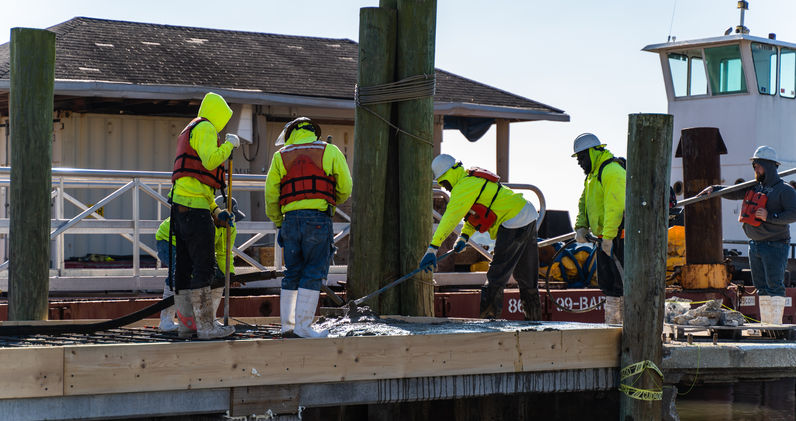 CPR repaired concrete dock cap's. New hollow core deck plank's were installed and a 6" topping slab was added for the final doc rehab.